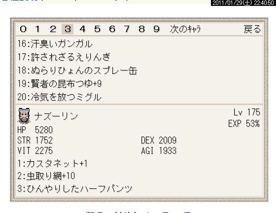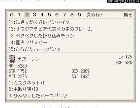 で、接頭語付の装備もどんどんたまって紹介するのがめんどくさい大変になってきたので、一人でニヨニヨするだけにします。前回の紹介から60個くらい増えたからめんどうなんだもん・・・。特に面白そうな装備がでたらその都度紹介します。