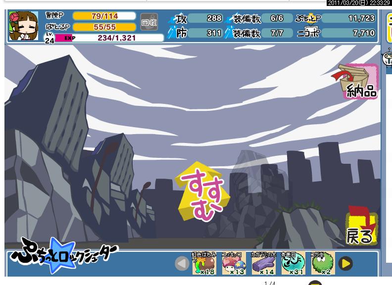 敵や宝箱から手に入ったアイテムを集めて右上の納品をするとぷちっとPなどが貰え、Lvごとに3種類の納品を全てこなすとボスもでてきます。Lv1~Lv3のボスを全て倒せば次のステージに進めます。