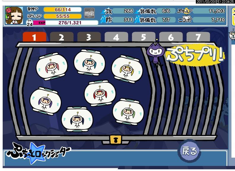 そしてこのゲームのメイン?「ぷちっと星人」です。各ダンジョンごとに7種類いて、最近実装されたのですが、全部集めれば装備などの特典が受けられます。