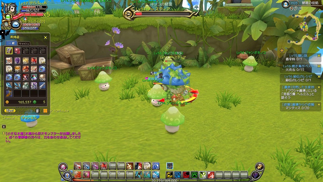 というわけでメンテナンス後マジシャン候補キャラを一気にLvをあげてしまおうということで。前に私がした予想通り、怪鳥の巣からチコに戻るまでの過程でクエストを全部達成していくと大体転職Lvの10まであがるようになってましたね。
