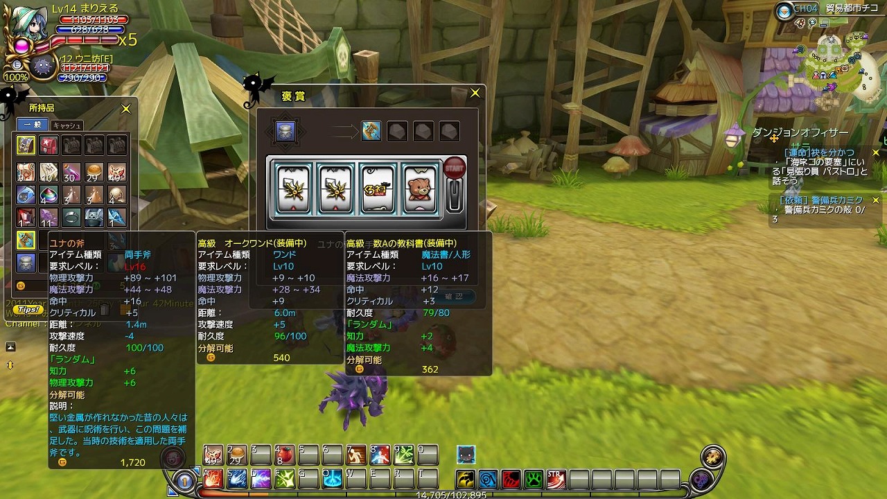 cβ時代では最強でしたが、今ではLvキャップきたしそうでもないのかしら?まぁ両手斧ってのがまた微妙な気がしなくもないですが、手に入っただけよしとしてこう。あ、ちなみに海ガニ報酬の古代の遺産?だっけのルーレットででました。
