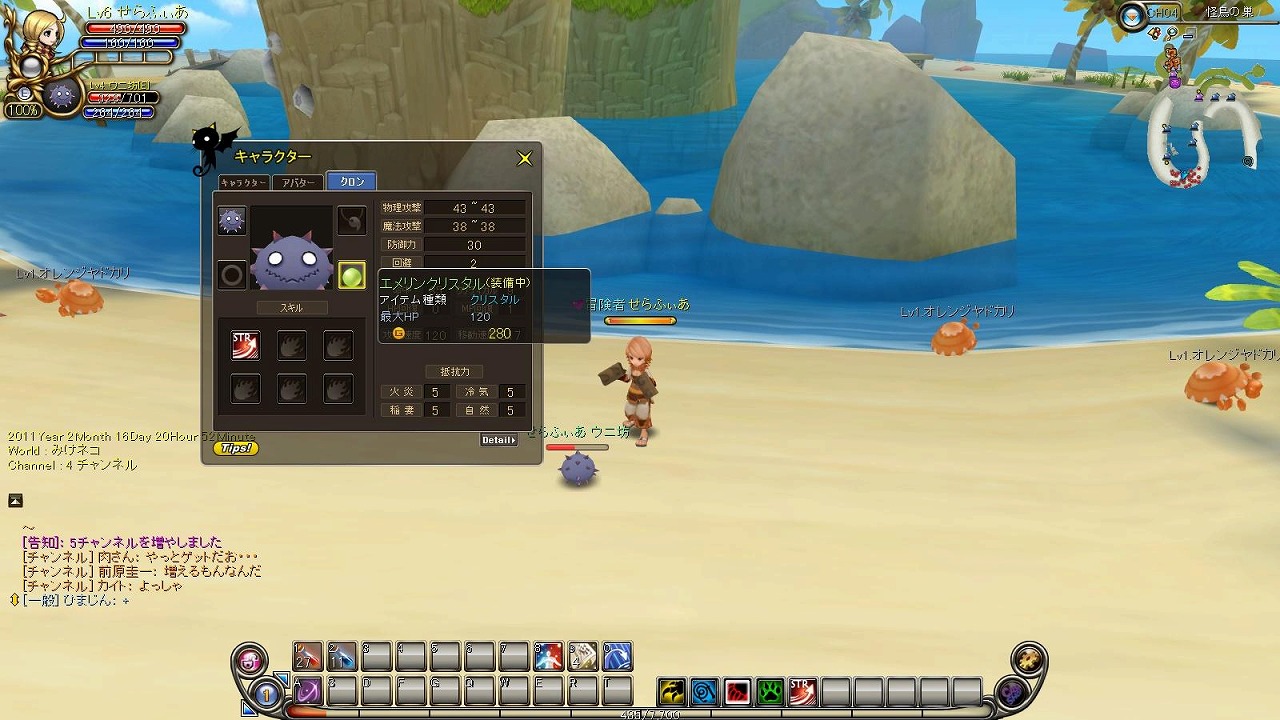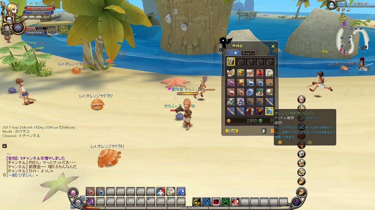 というわけで早速キャラ作成。キャラスロットは2個あったかな?それ以上の拡張は課金っぽいです。鯖は1つでチャンネルが4つ。途中で接続人数が多かったからか5つに増えました。