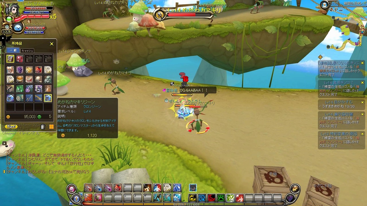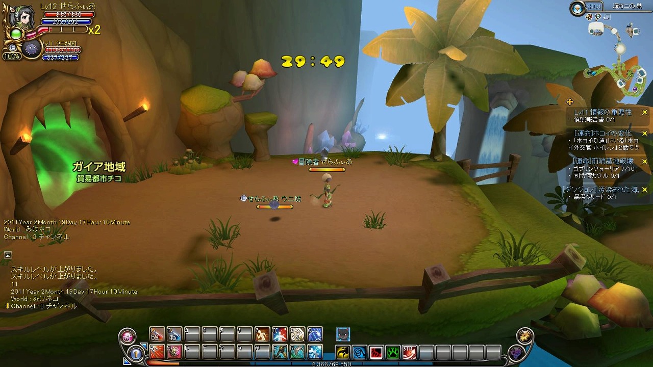 というわけでメンテナンス後マジシャン候補キャラを一気にLvをあげてしまおうということで。前に私がした予想通り、怪鳥の巣からチコに戻るまでの過程でクエストを全部達成していくと大体転職Lvの10まであがるようになってましたね。