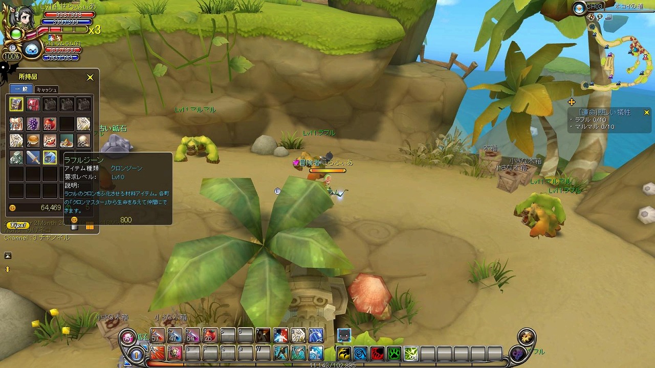 というわけでこのMAPのクエストもとりあえず終わり、次のMAP「嵐の海岸」へ・・・と思いきやカウルを倒す前に終わらせてしまったので、チコのクエストに挑戦。