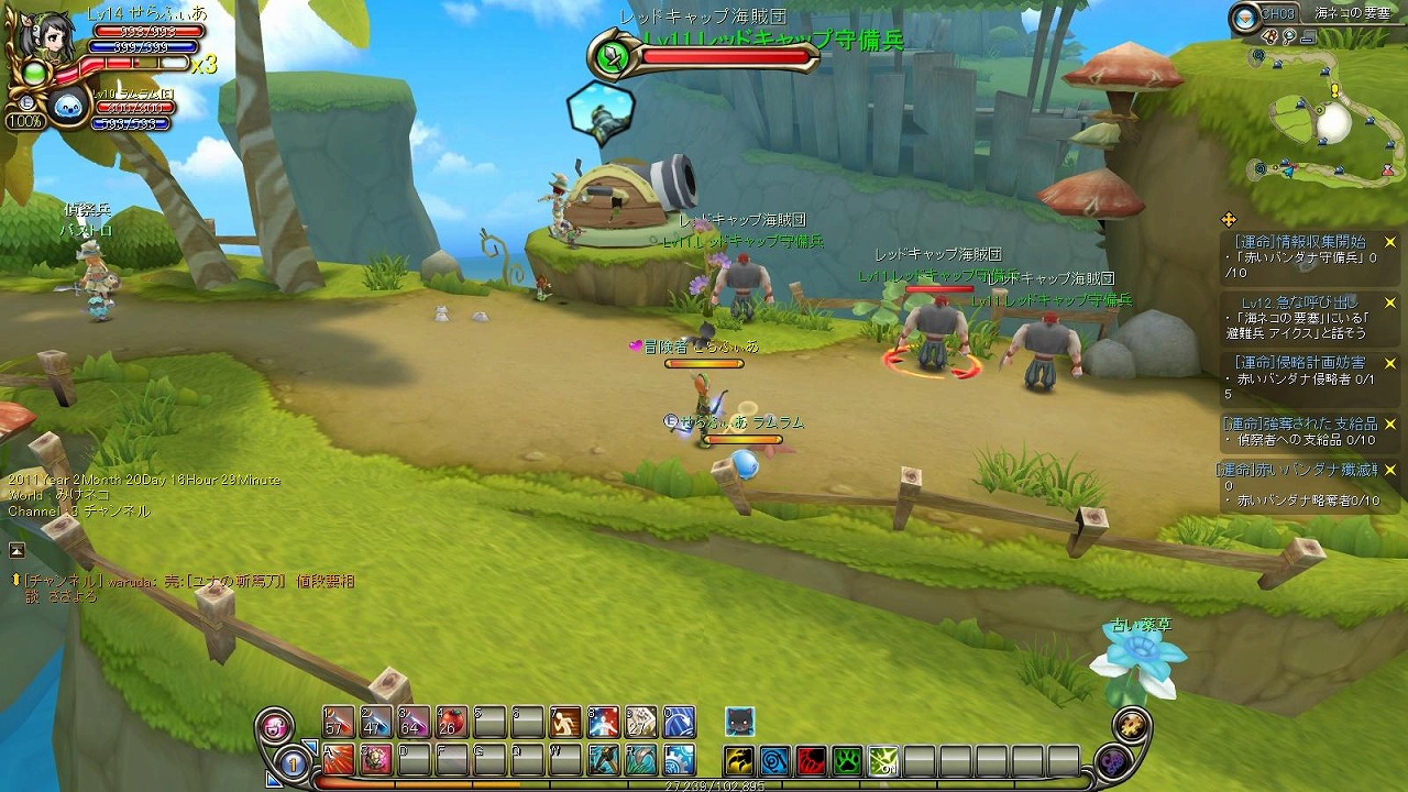 まぁそんなこんなで次のMAP「海ネコの要塞」です。チコにいる海賊と敵対している?レッドキャップ海賊団のアジトですね。チコに攻め込もうとしているらしく、それを防いでほしいというクエだった気が。(このあたりでクエスト内容を読むのが面倒になってくる、結構長い文章がねぇ)