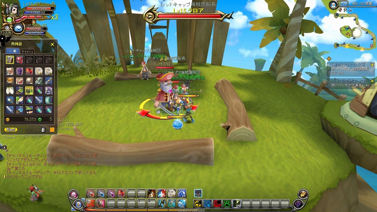 いかにもな海賊風ボス、クロアです。ジーンはやはり落とさない模様。ここでポカしちゃいまして、SSからもわかる通りインベントリがいっぱいでクエストアイテムが手に入らず、もう一度倒すハメに・・。ボスは取り巻き召喚を大概しますが、どんどん召喚してきて5,6匹にボコられると結構きついですね。