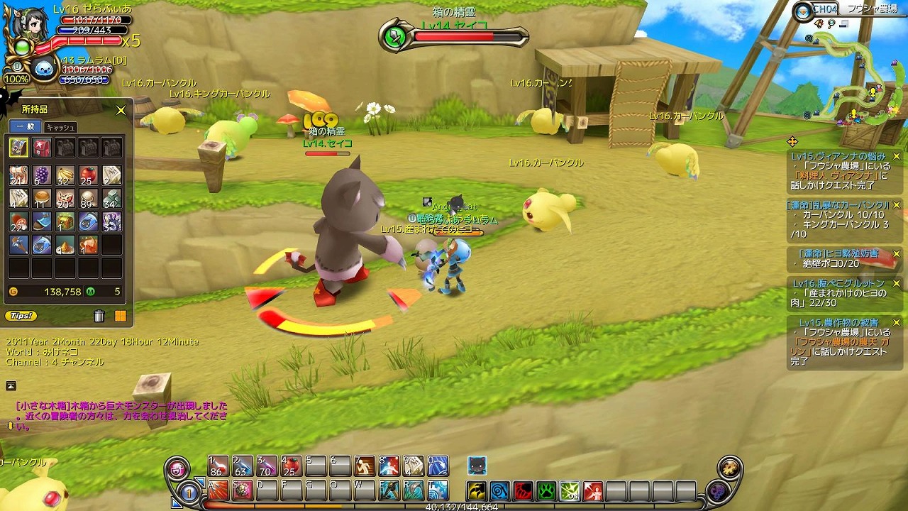 Lvカンストしたとかサブキャラ育成とか話がちらほらでてきますが、私はあくまでまったりです。みんな早いよー(´・ω・`)