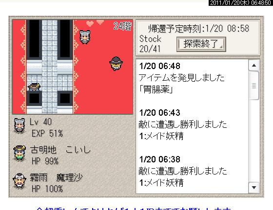 しかし30F越えたあたりから少し敵が強くなってきましたね~。今まで1戦闘で1~3%程度しか減らなかったHPが10%近く減るようになってきました。さらにはフランちゃんと戦ったときは50%近くもっていかれましたねぇ。。まさかのフォーオブアカインドでした。