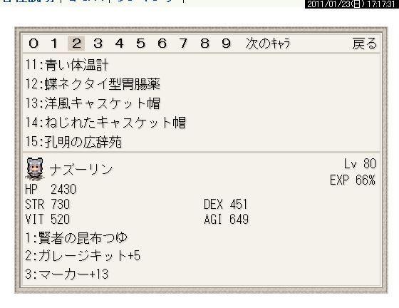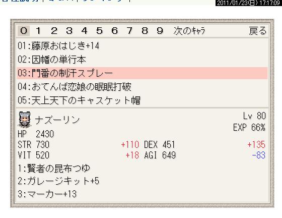 そんな感じで装備を見直してみると、やっぱりDEFにマイナス補正のついている装備をしていたわけで・・・(昨日の時点、この記事を書いているときは変更後)。