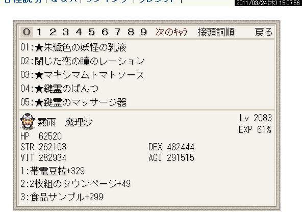 油で揚げた~が他の装備についてorzってなったり、豆粒だけど静かなる月の光の~がついててホクホクだったりと、まだまだやることの多い魅魔Qはほんとに面白いです。
