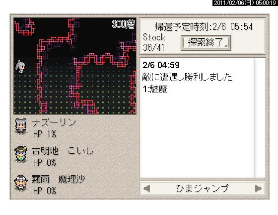 Wikiには300F以降辛くなる的なことが書いてあった気もするようなしないようななんだけど、300Fまでの雑魚敵のほうが強かった気がするんだけど・・・。それまでは3匹PTの敵1回でも戻らないといけないくらい削られたのに、今では2,3回くらいなら問題なし。装備強化のおかげかな?